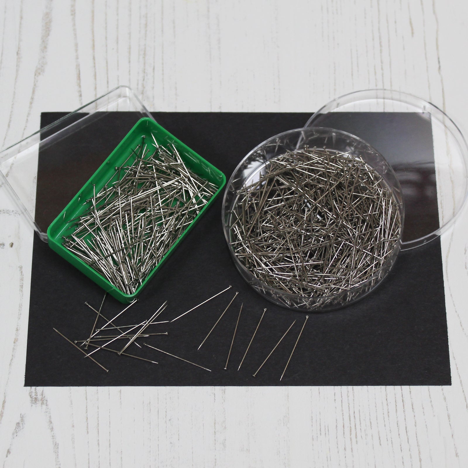 10g ~ (Approximately 200 pins) in a small neat plastic case with lid.