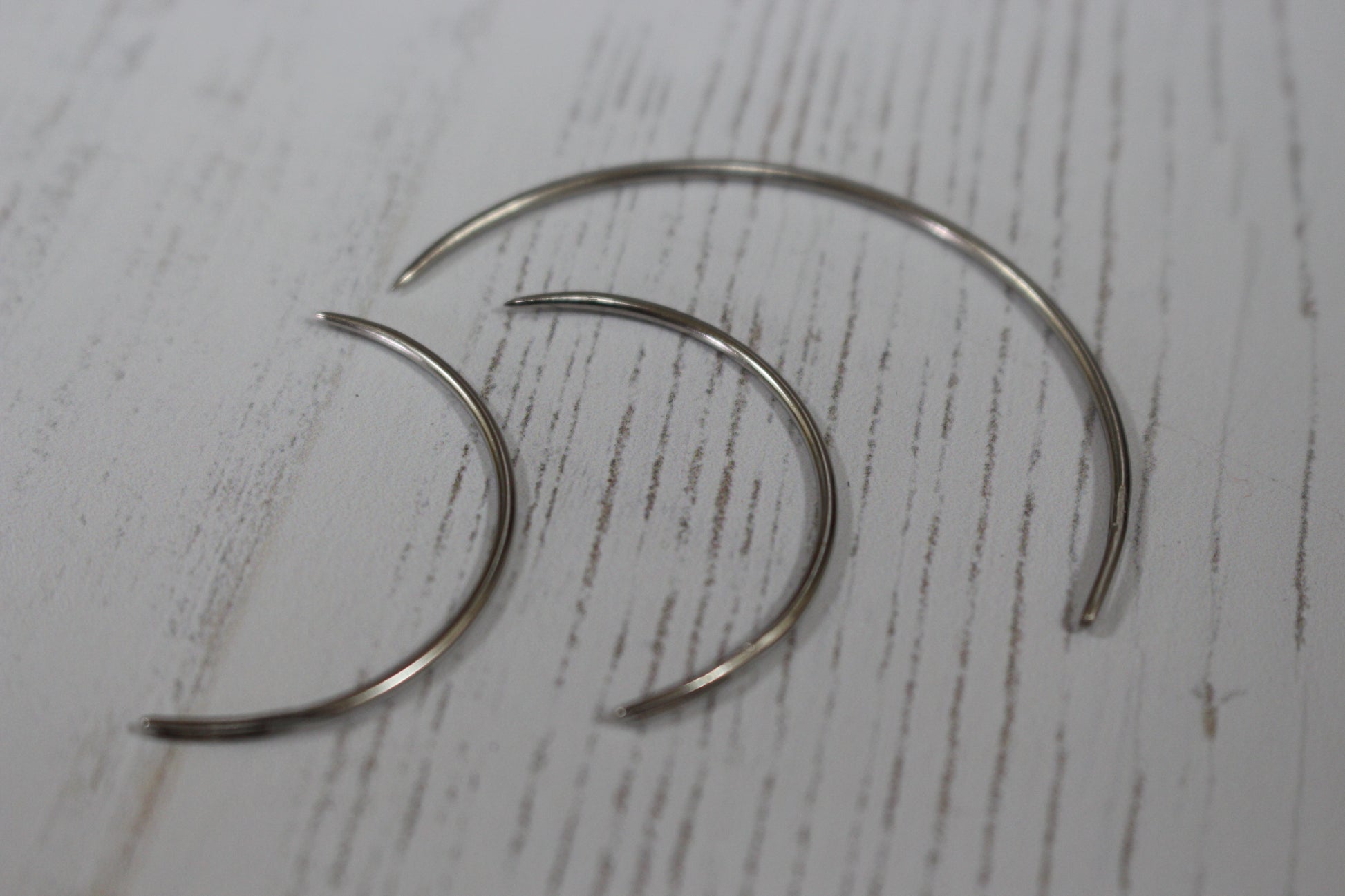 Curved needles are commonly used when it is only possible to work from one side of the fabric or item.