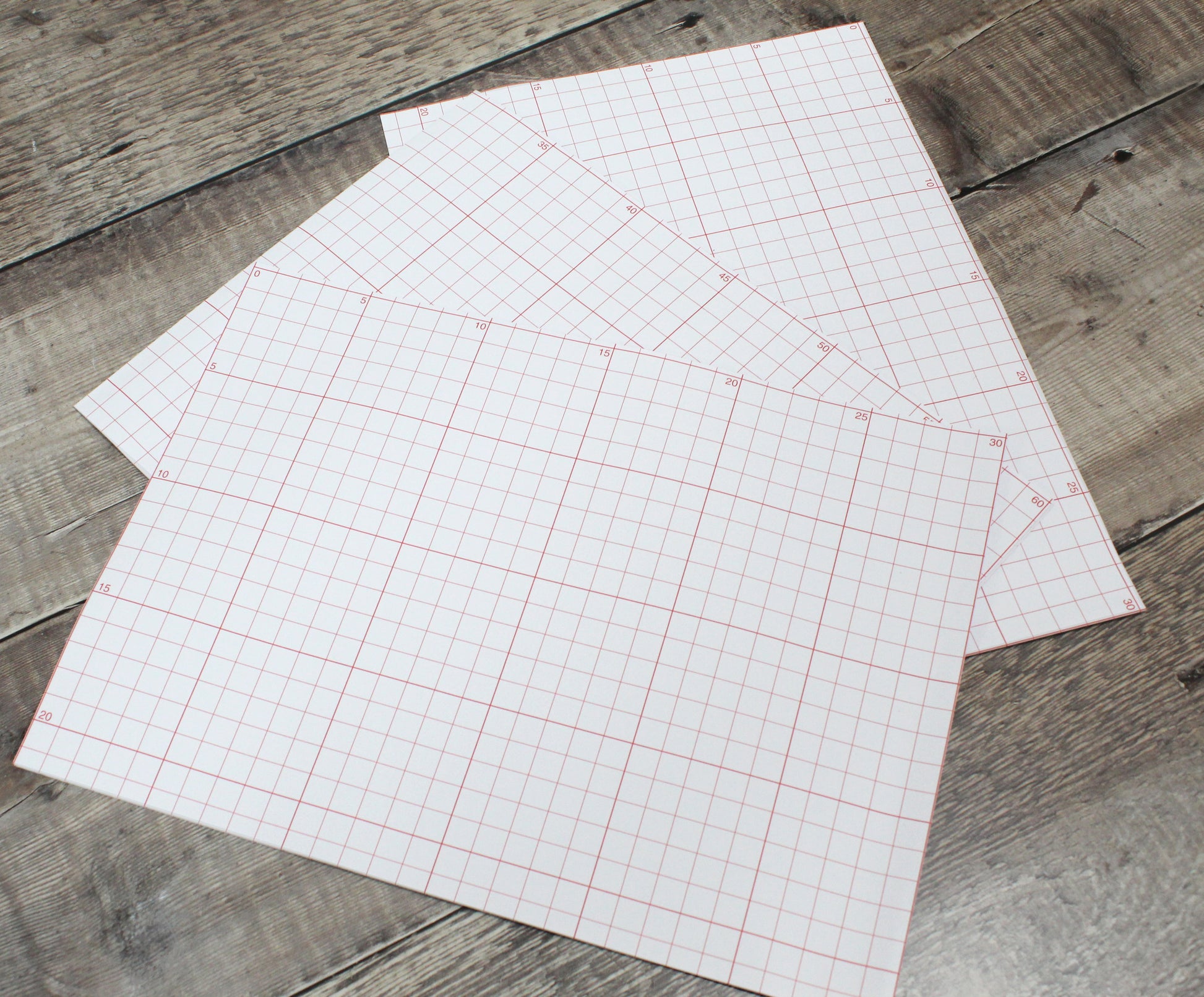 High quality crisp white 80grm pattern paper (made in England) with detailed red printed lines with an overall sheet size of 87cm x 61cm (34" x 24")