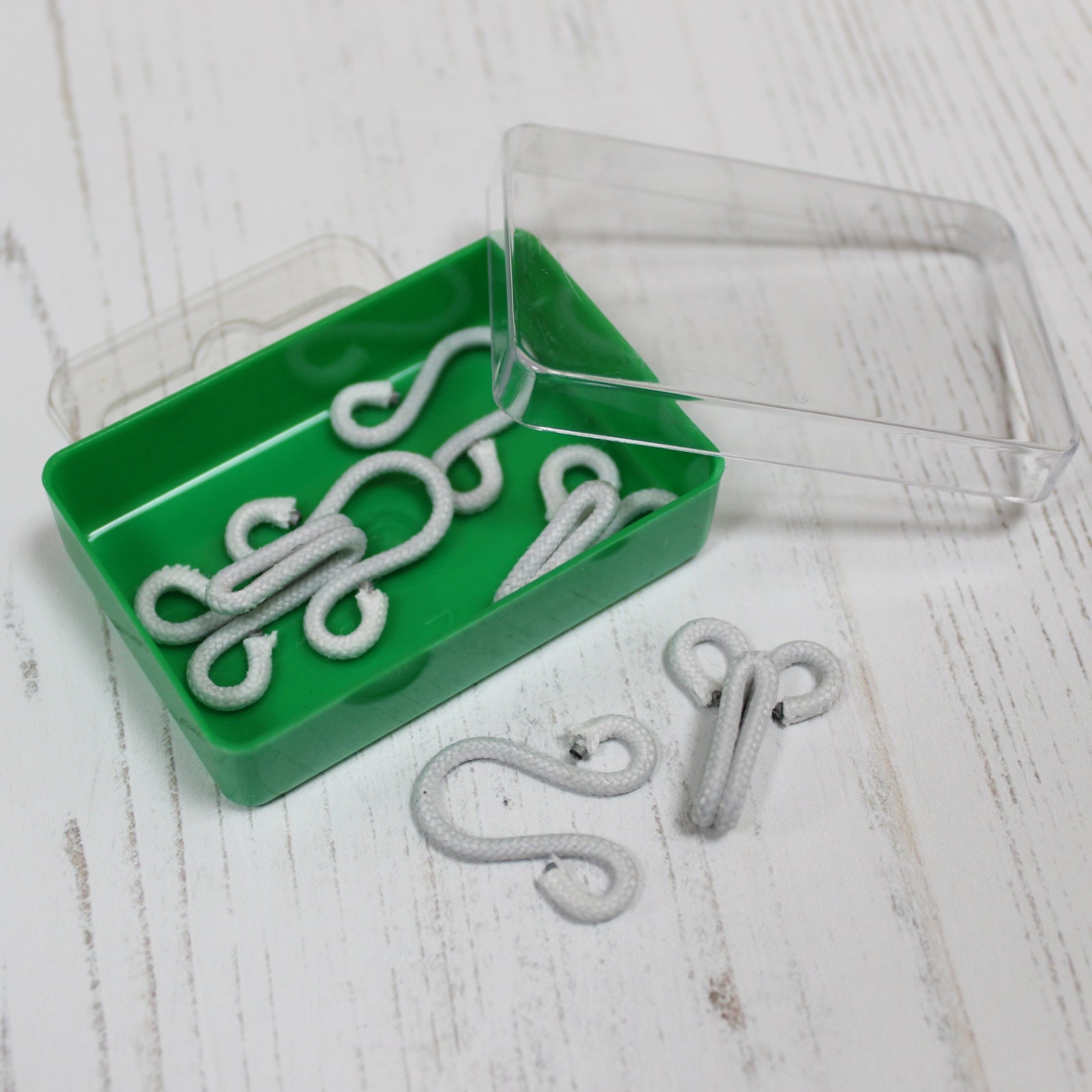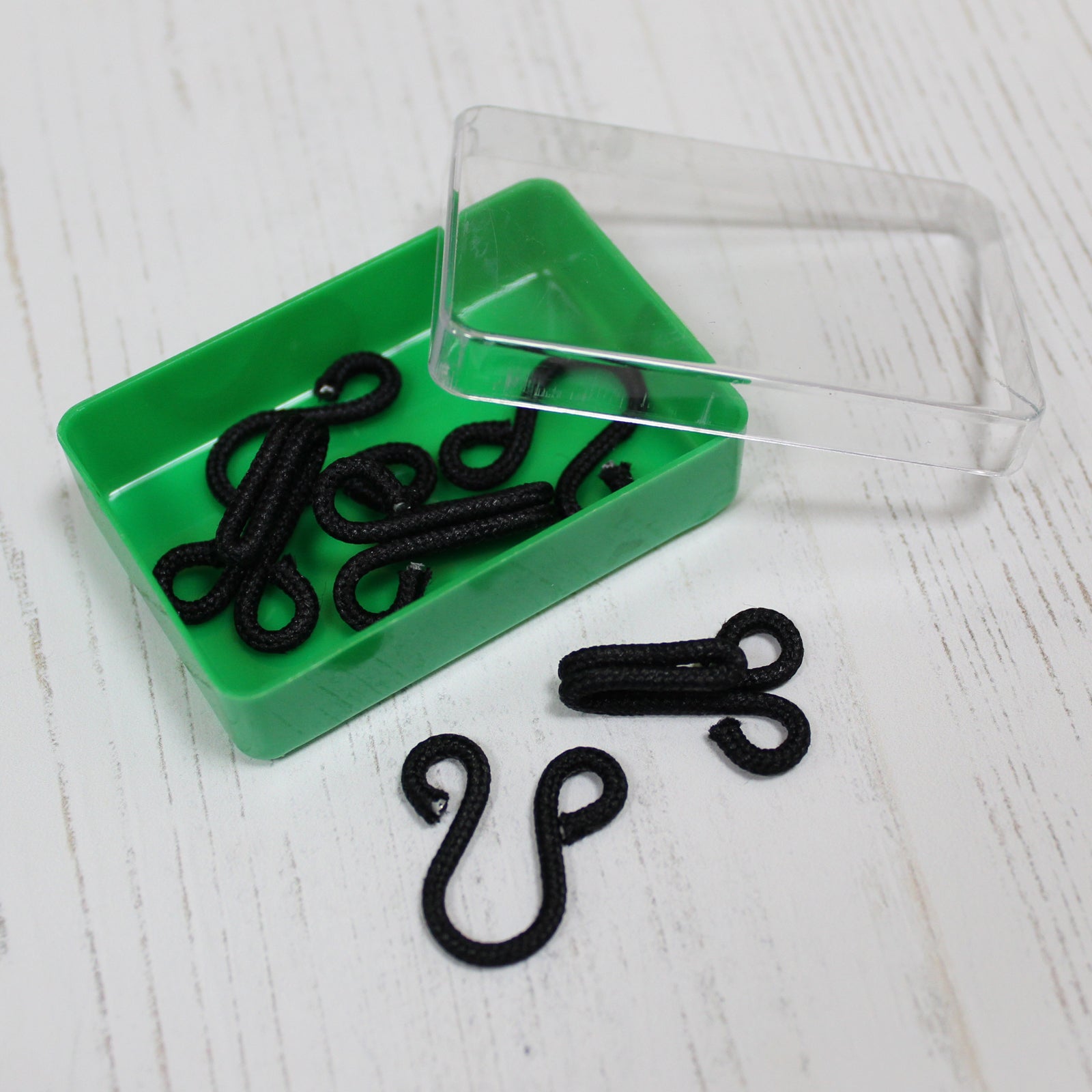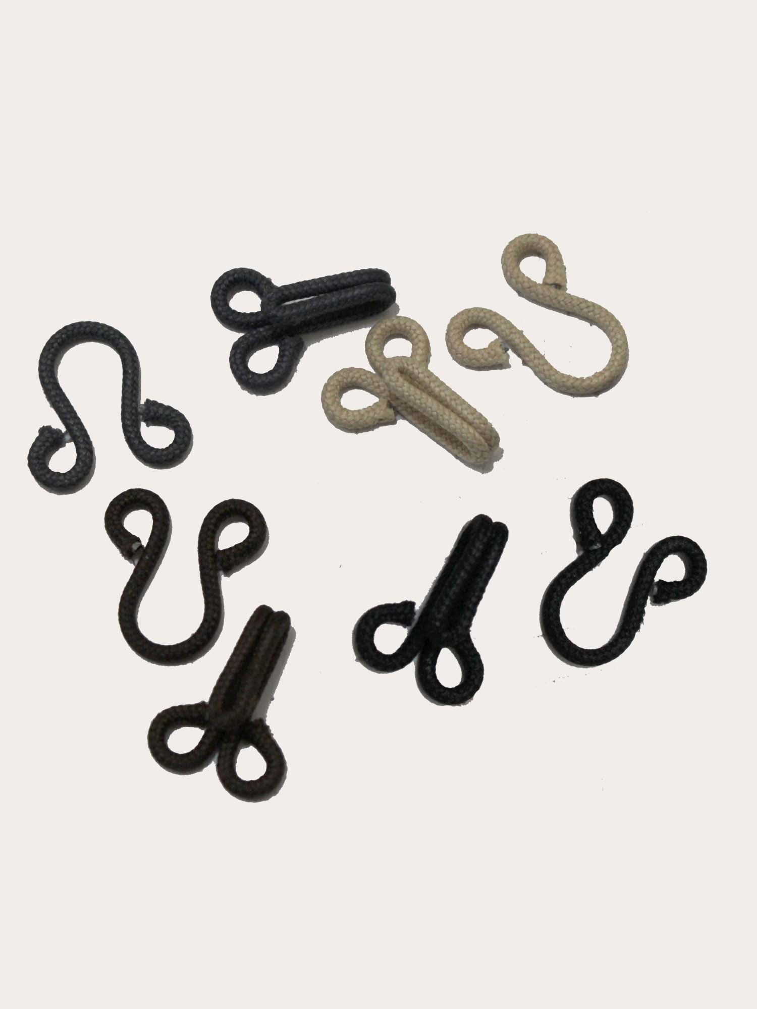 These hooks and eyes are made from 1.4mm galvanised steel wire which has been braided in coloured cotton for a choice of: