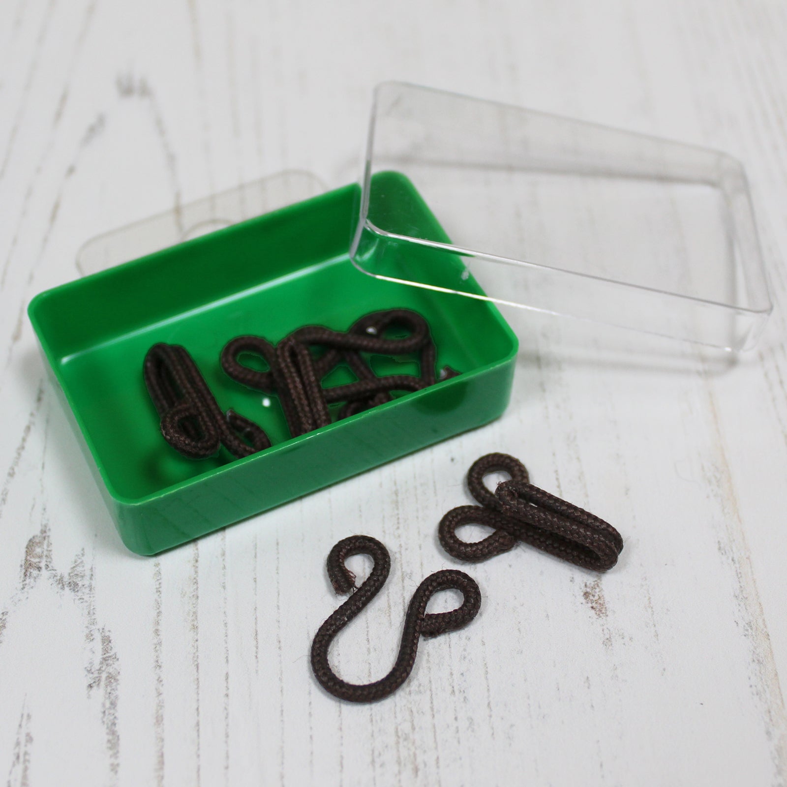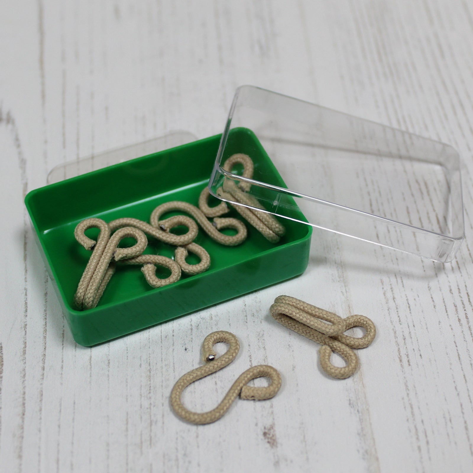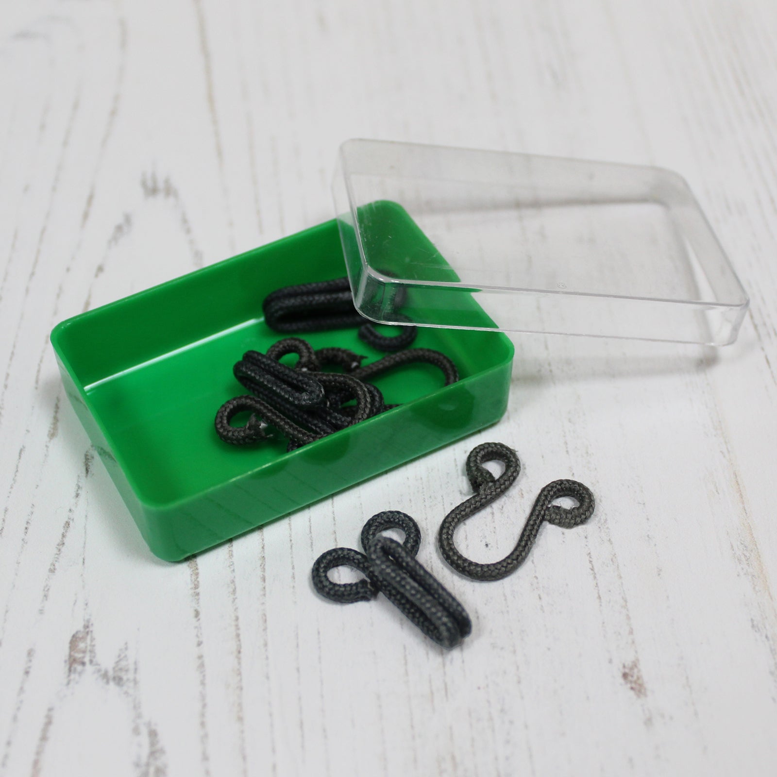 These hooks and eyes are made from 1.4mm galvanised steel wire which has been braided in coloured cotton for a choice of: