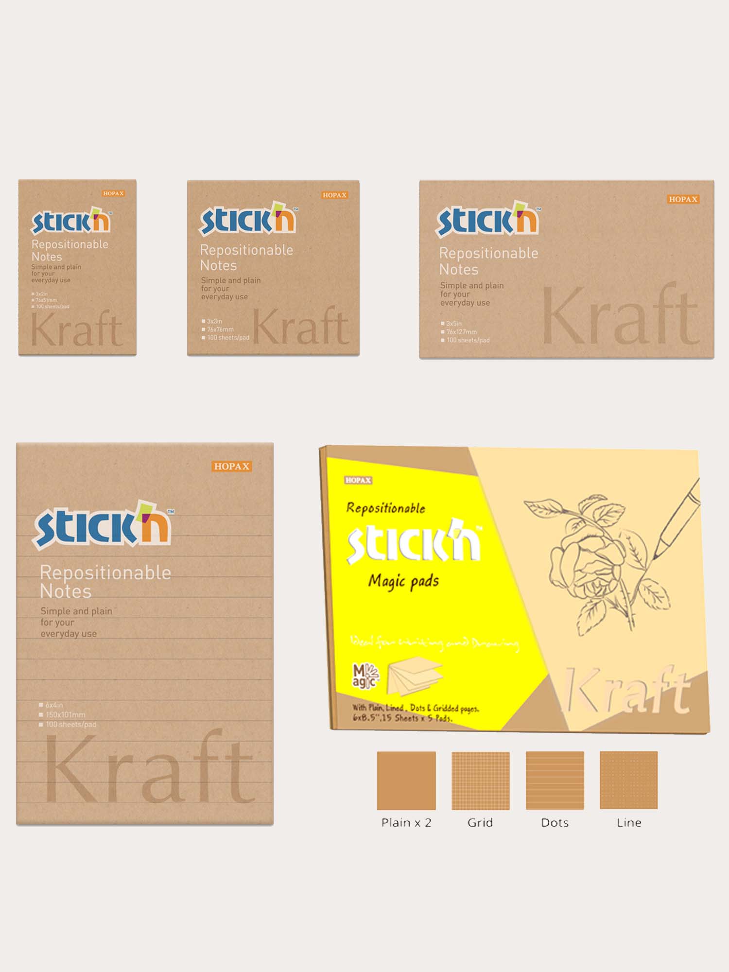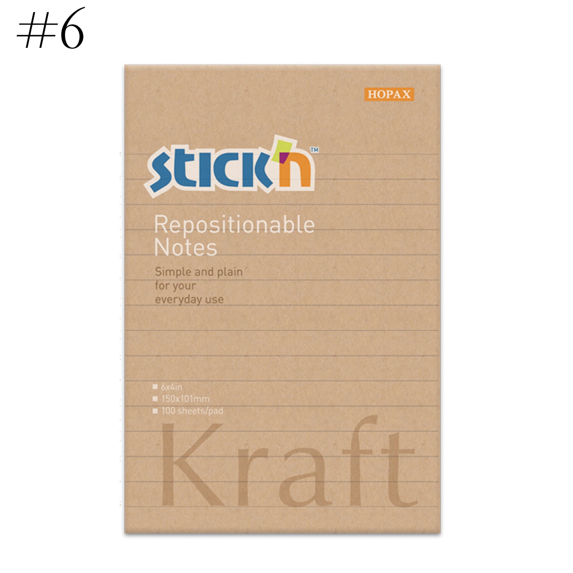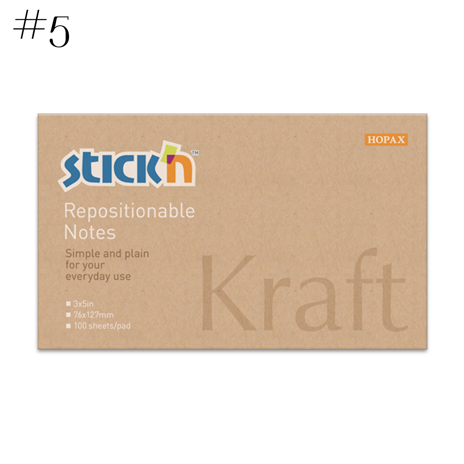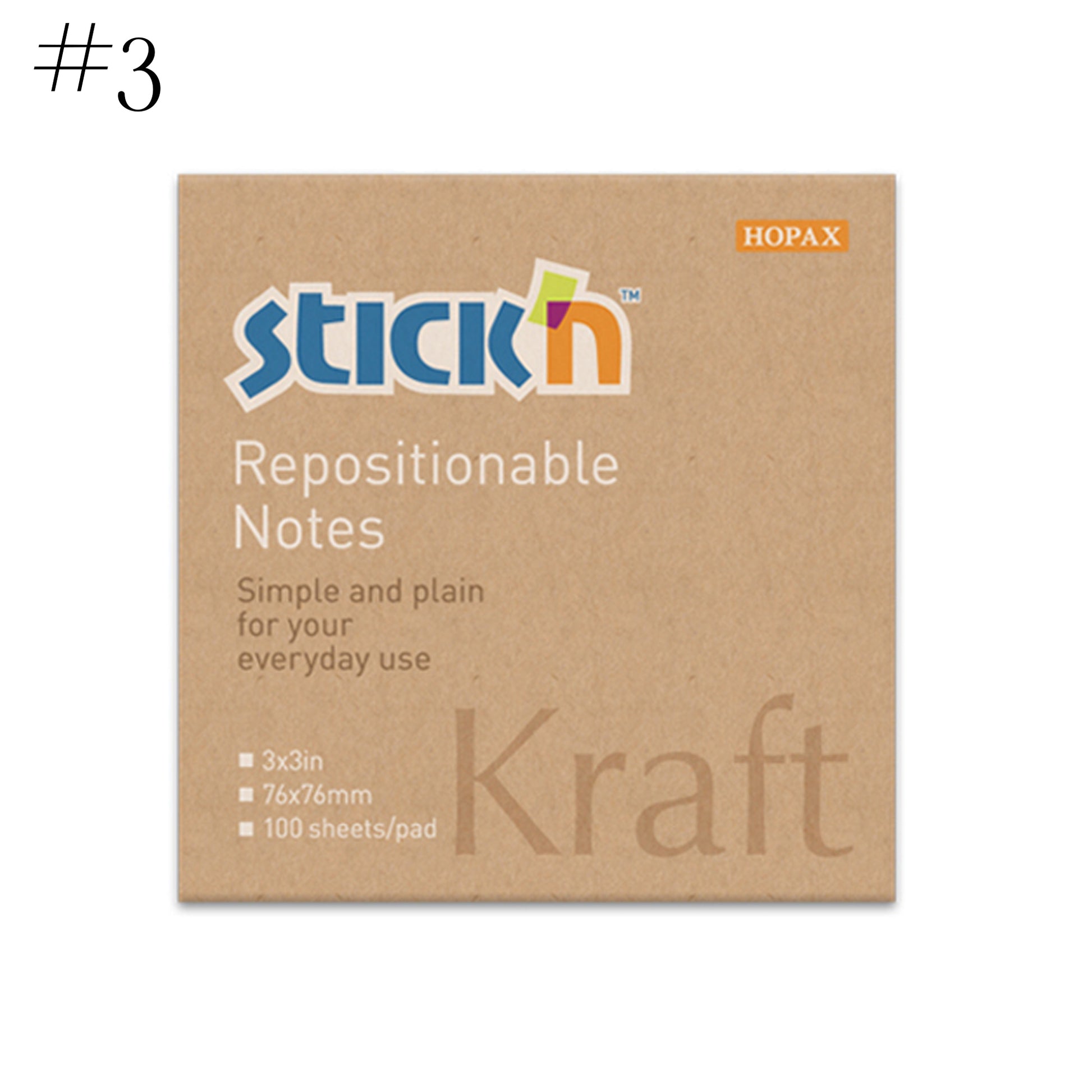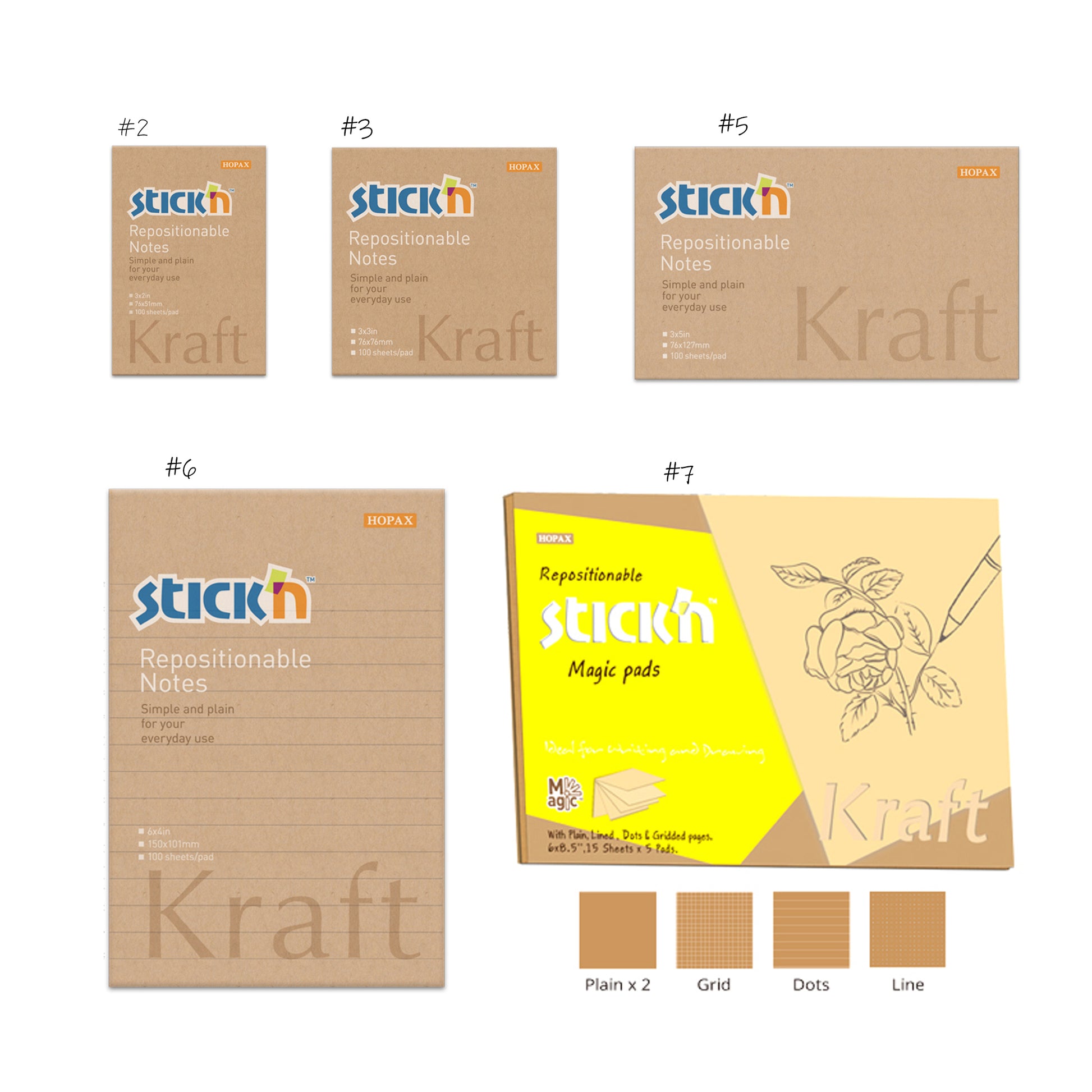 Stick'n sticky notes made by one of the world's leading manufacturers of repositionable sticky notes using high quality smooth 80grm paper with all pads having 100 sheets per pad (except the #7 pad.