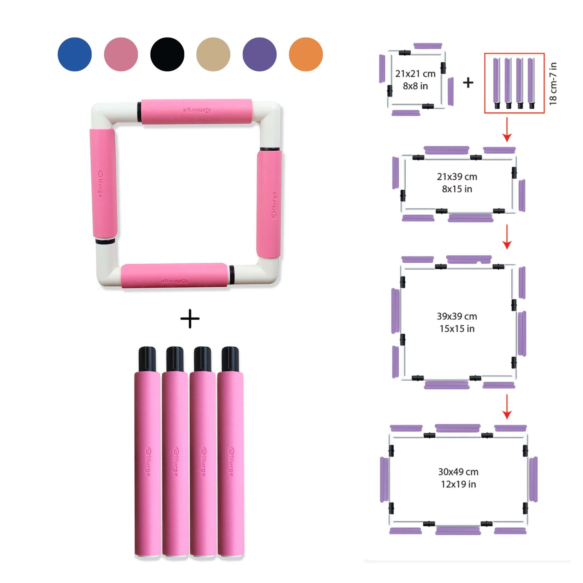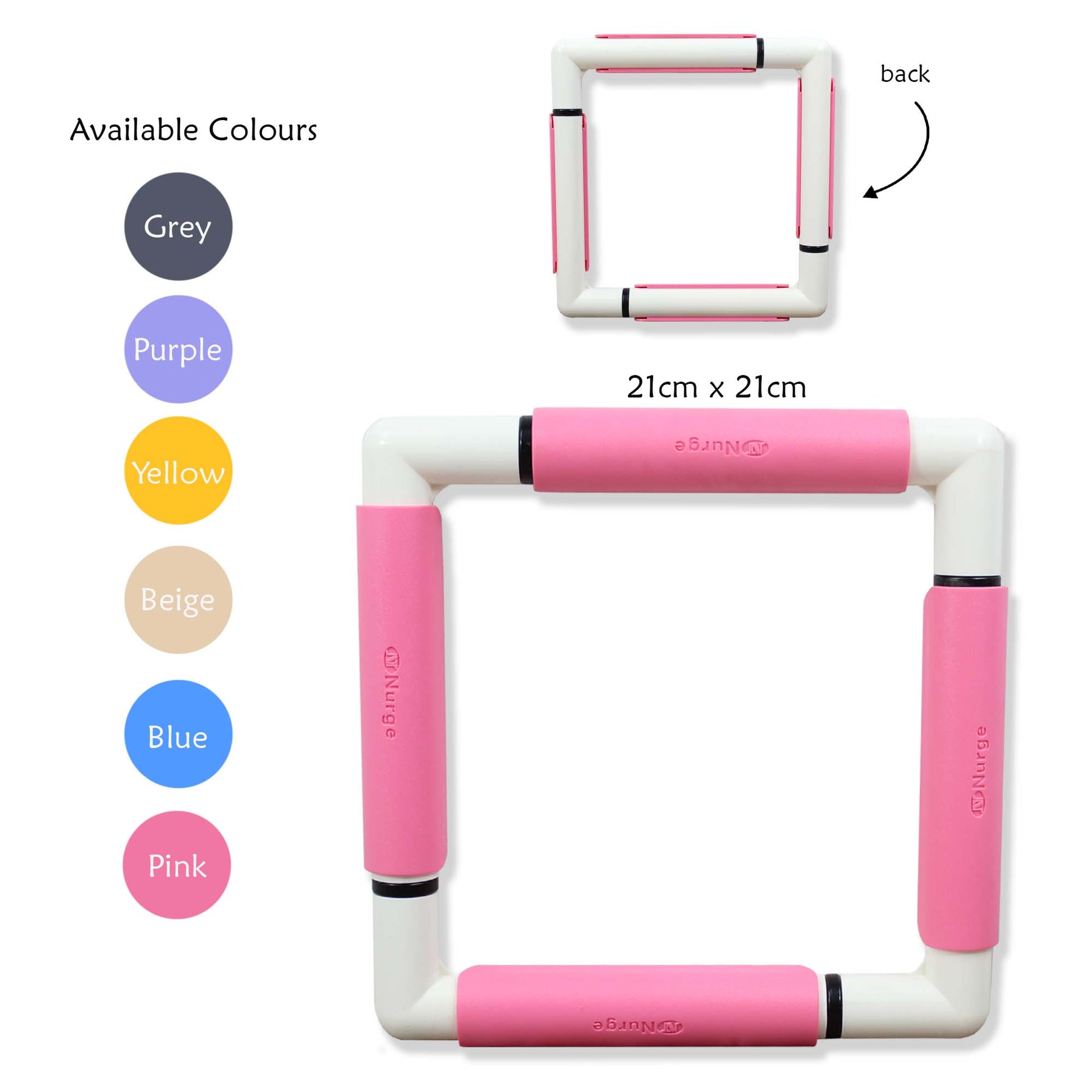 Key Features: Genuine NURGE Quality * Strong & Sturdy * Lightweight * Easy ‘Snap’ together Assembly * Keeps Fabric Tight and Even * Simple Twist Adjustment * Optimises working space * Cheerful Colour Options *