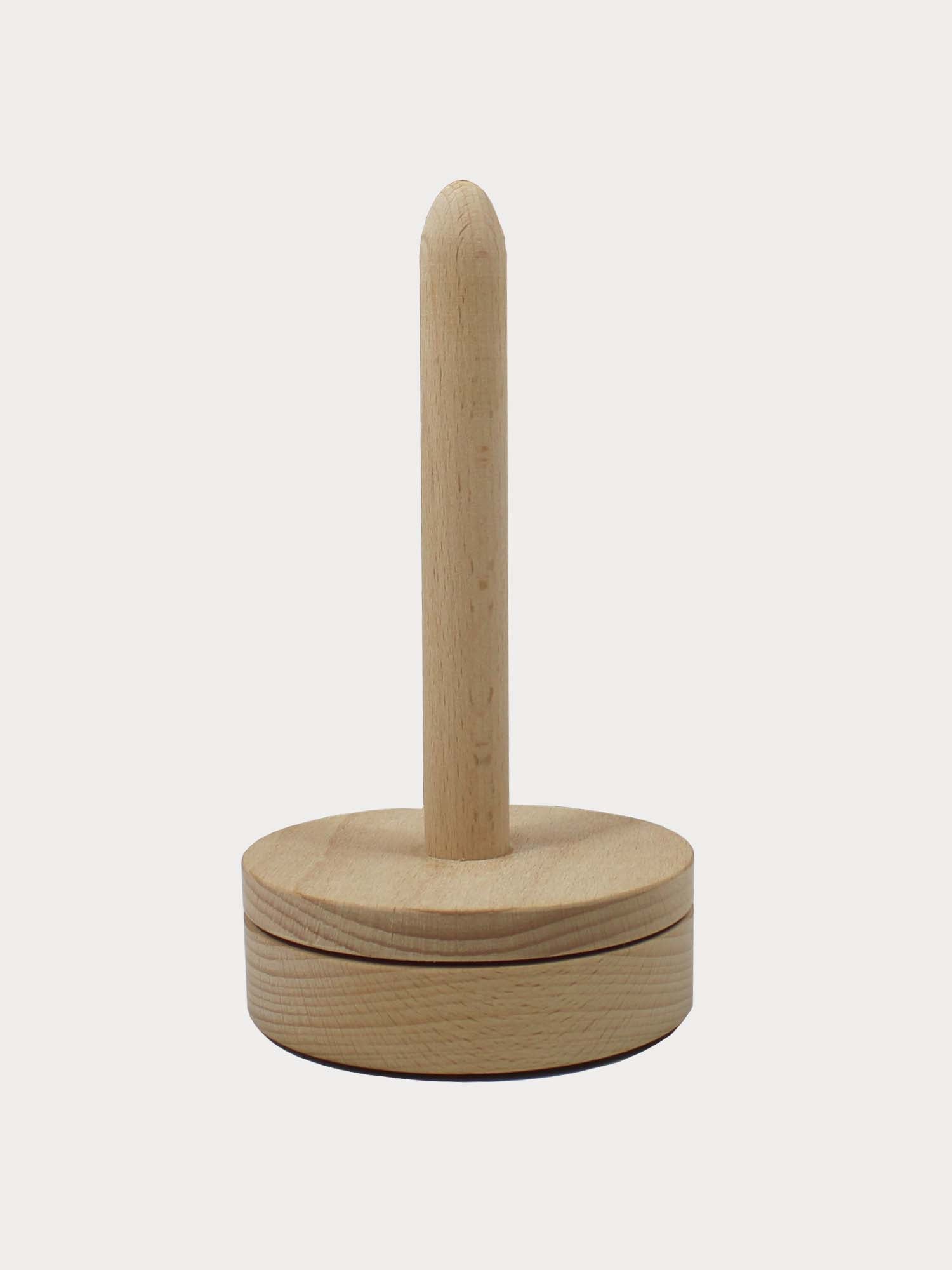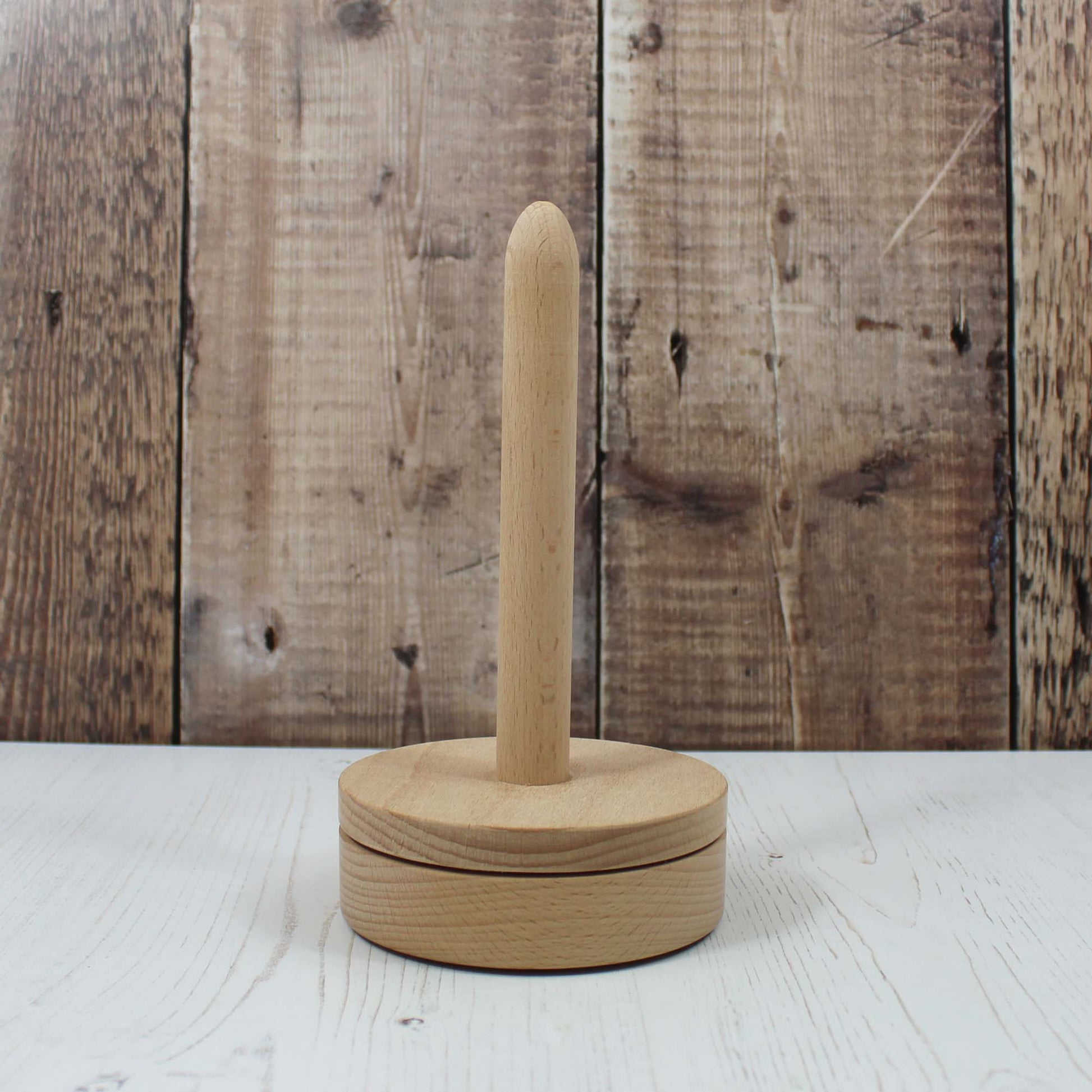 This butler stands slightly taller than most others to take wool and yarn balls typically from 25g to 150g. The centre spindle is 150mm (6") high with the top generously tapered back to allow smooth and easy loading of your wool.
