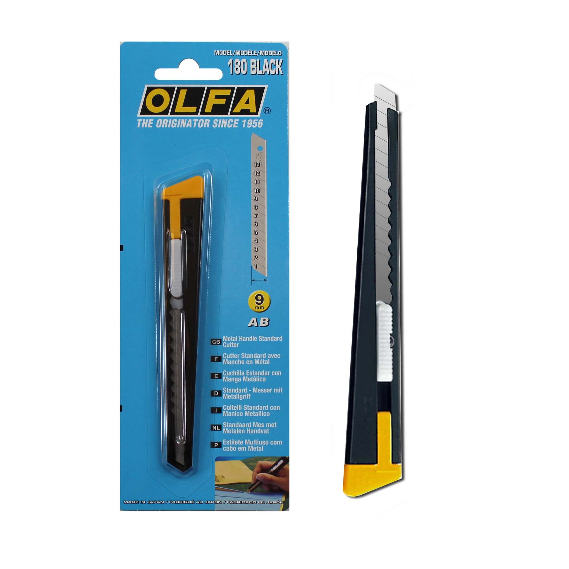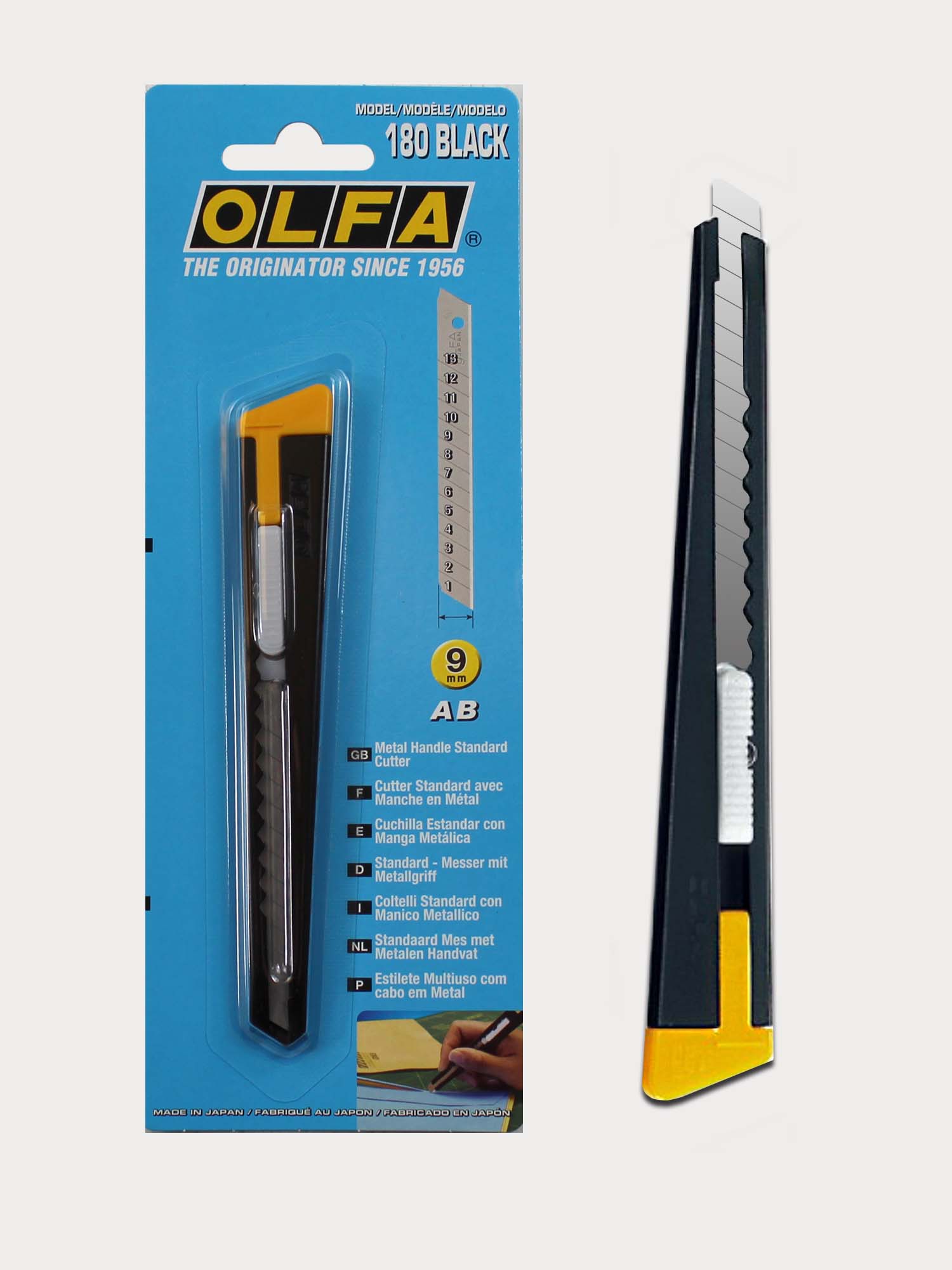 The OLFA 180 Black is perfect for precision work on materials such as wallpaper, vinyl, light PVC, window film, car wrap, signage film, fabric, and leatherette. It is also highly effective for general home and office use, handling light-duty tasks with ease. Despite its small size, it remains durable and capable of cutting through materials like paper, cardboard, packaging, shrink wrap, caulking, foam board, and moulding.