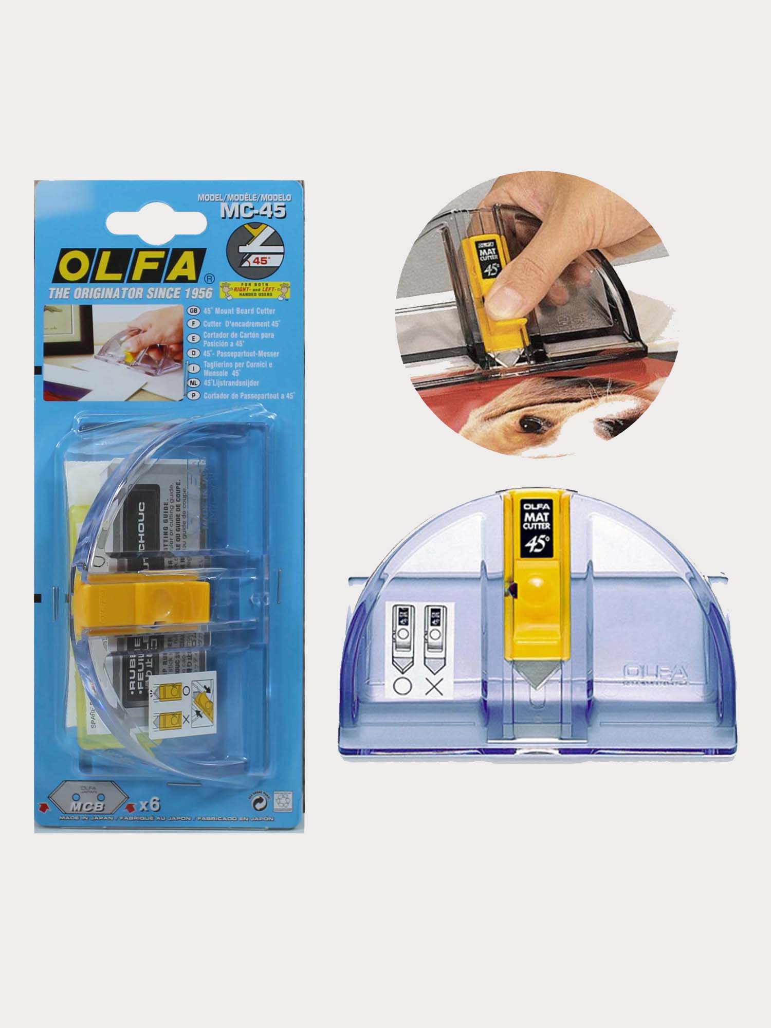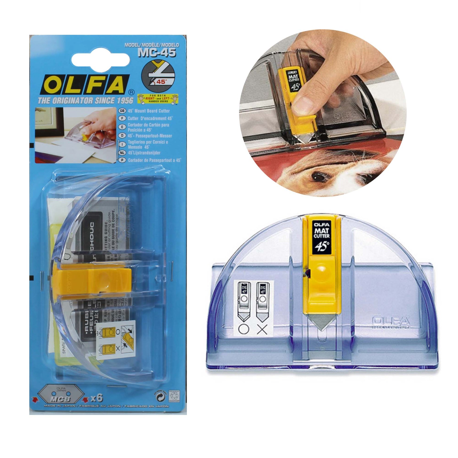 The OLFA Mount Board Cutter (MC-45) is perfect for card making, picture framing, model making, and more, this lightweight and easy-to-carry tool comes pre-installed with 1 blade and includes 5 additional spare blades.