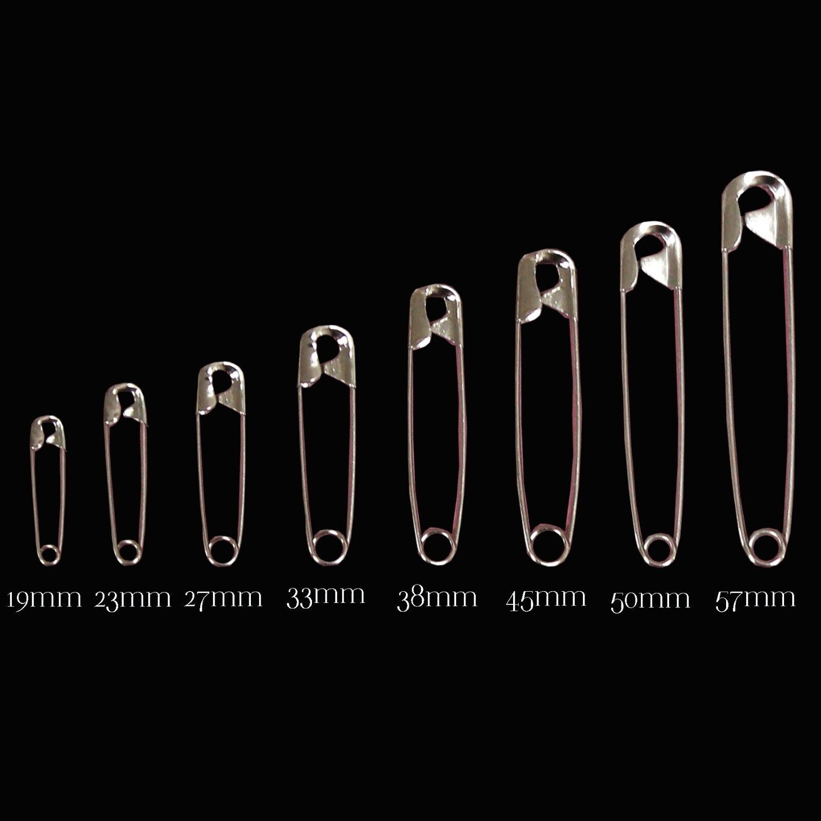 Premium quality British Safety Pins made from hardened steel pin wire and nickel plated for a bright shiny silver finish.