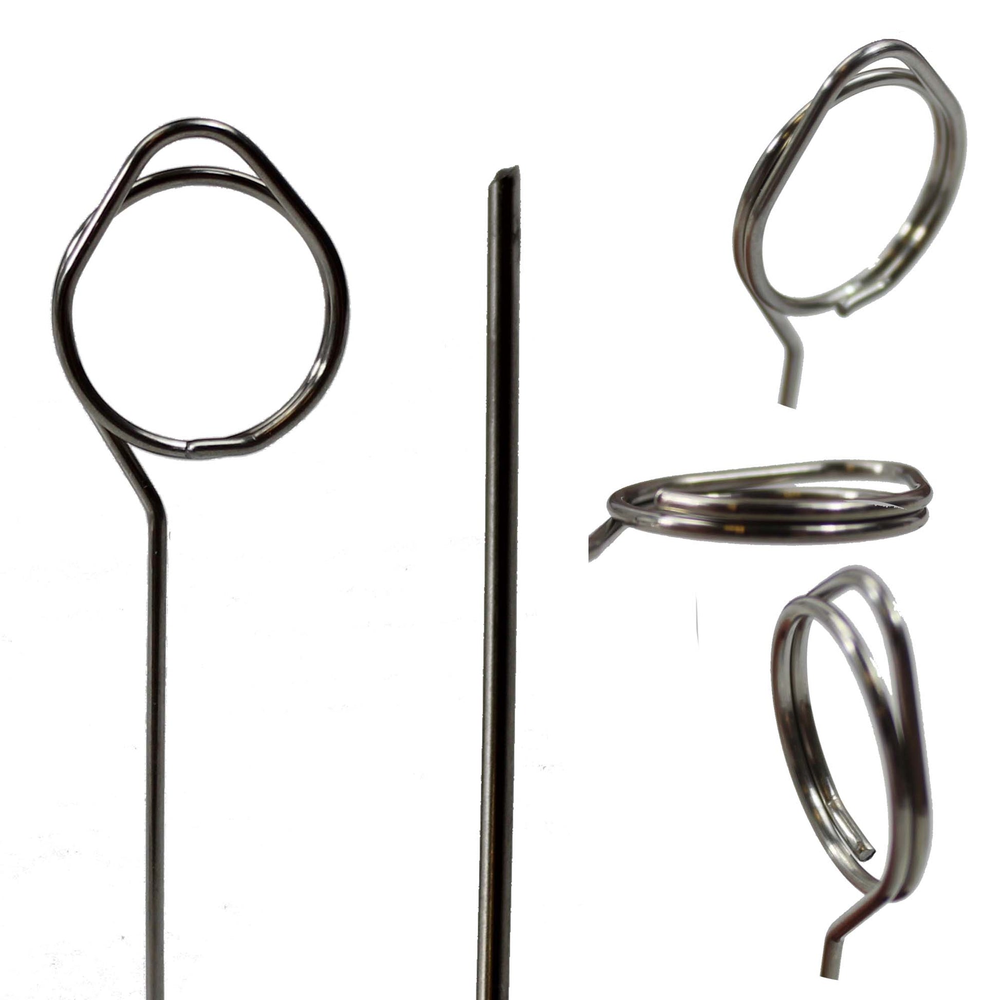 These Stainless-Steel Pins are a total of 75mm long (3” inches) with a 16mm internal diameter coil and a raised lip as a leading edge to easily insert the display label or card.