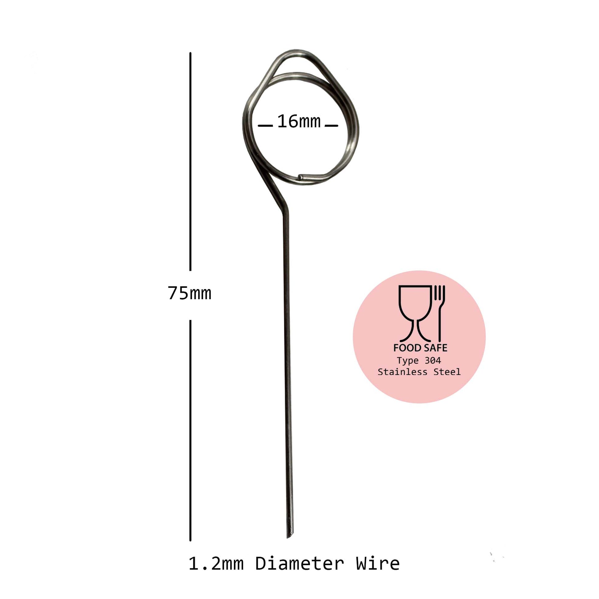 The pins are made from 1.20mm diameter Type 304 Food-Safe Stainless-Steel Wire.