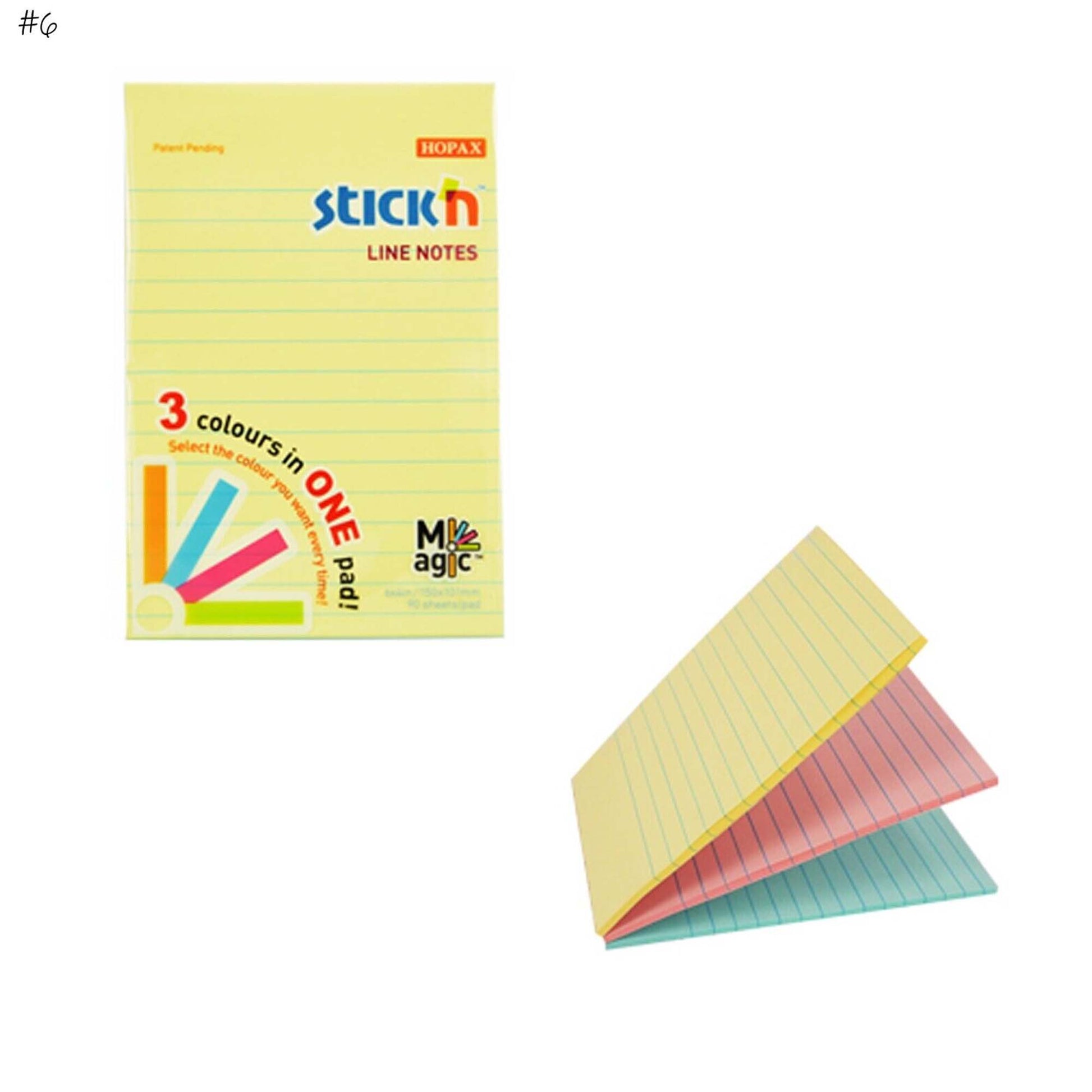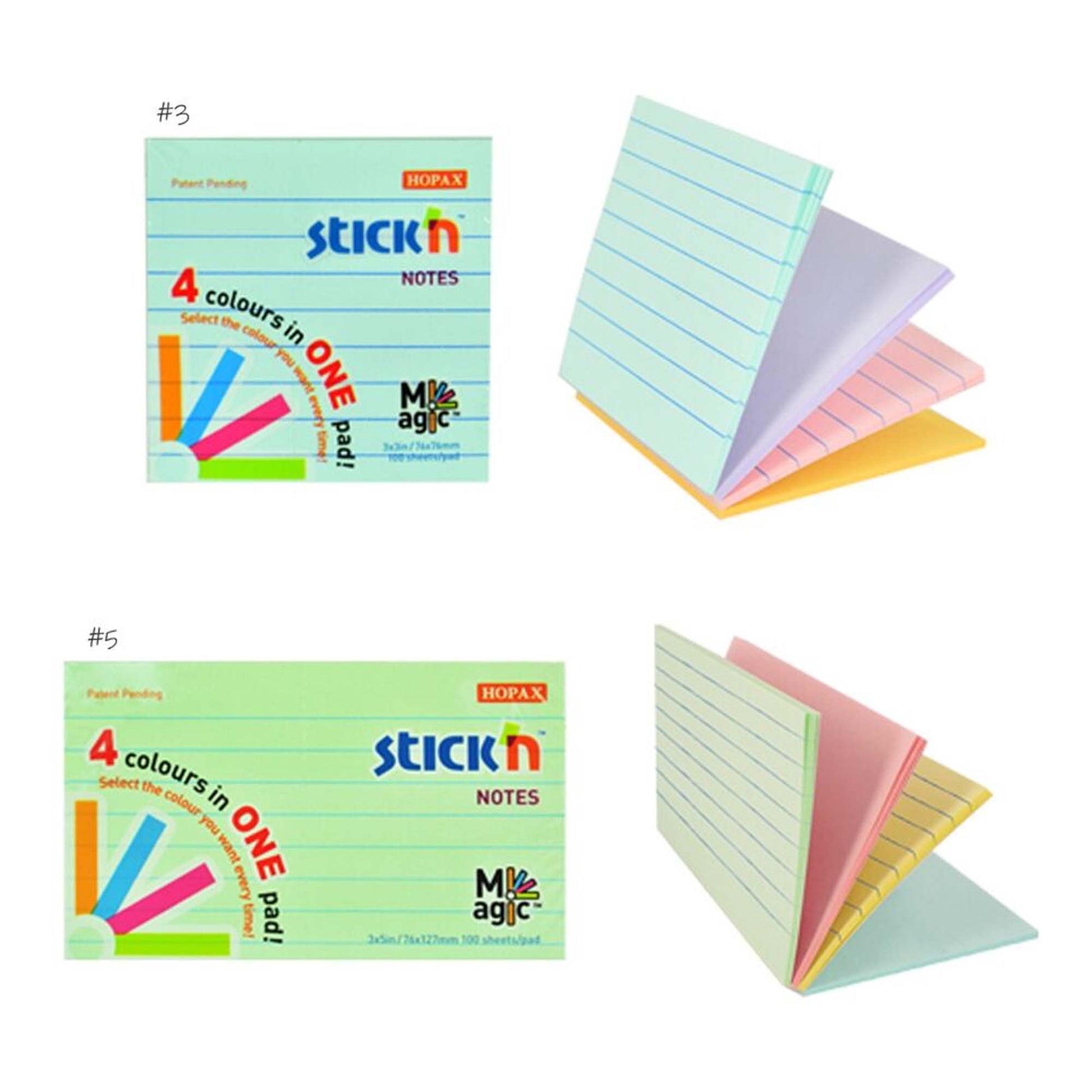 Stick'n sticky notes made by one of the world's leading manufacturers of re-positional sticky notes using high quality smooth 80grm paper with all pads having 100 sheets per pad (except the #6 = 90 pages and the #7 = 75 pages)
