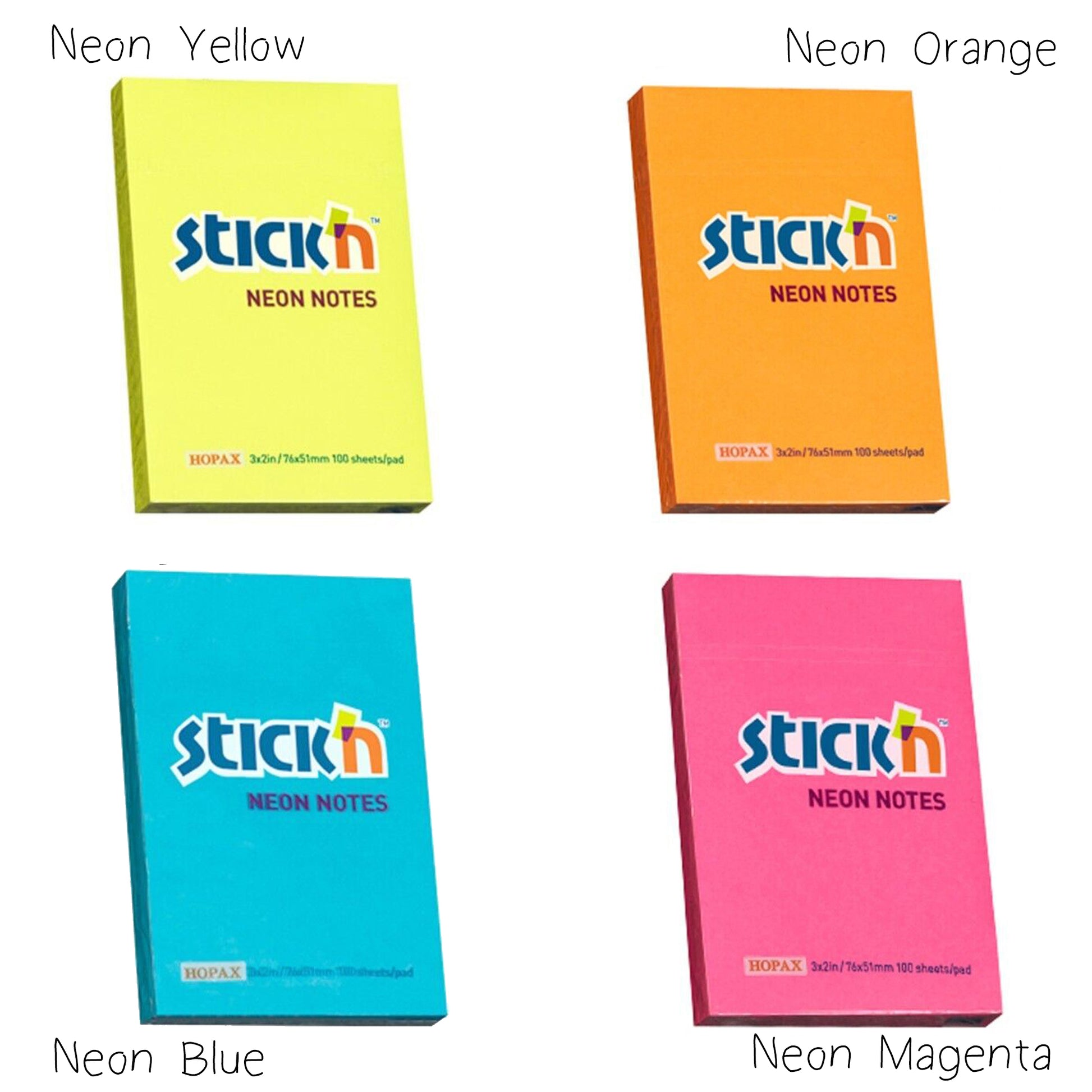 Stick'n sticky notes made by one of the world's leading manufacturers of repositionable sticky notes using high quality smooth 80grm paper with all pads having 100 sheets per pad.