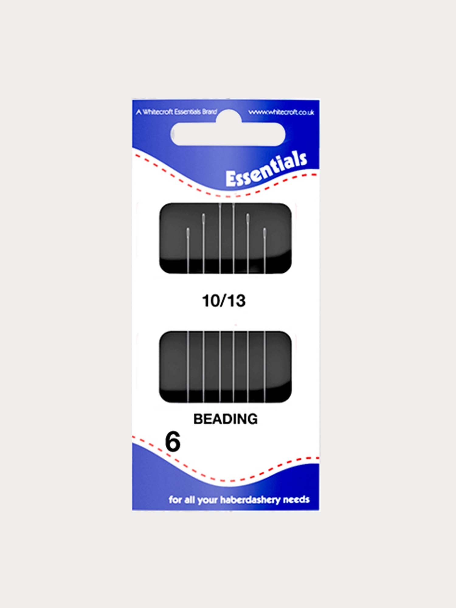 Beading needles are very fine with a narrow eye to enable them to fit through the centre of beads and sequins along with a long narrow shaft to thread and hold a number of beads at a time.