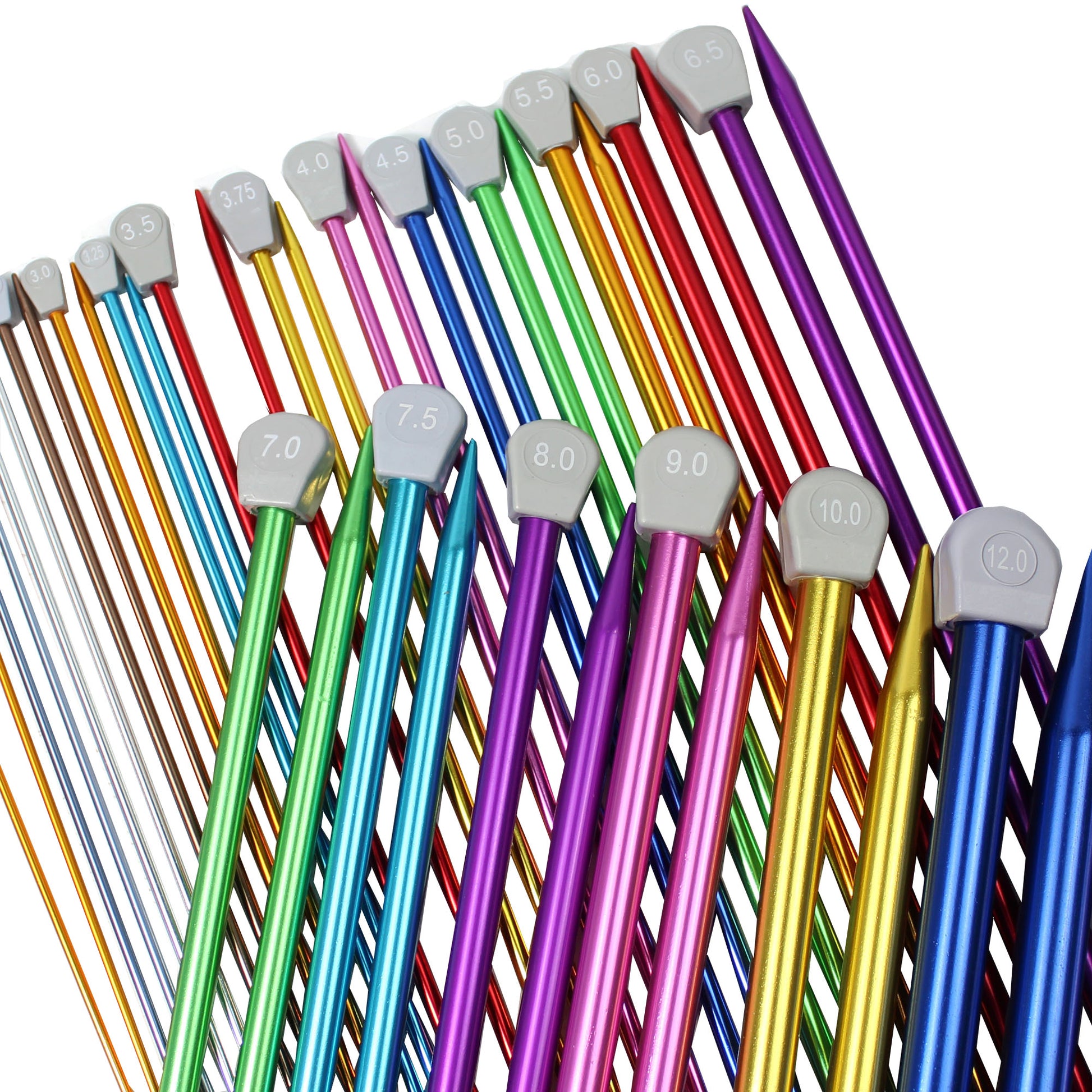 Anodised all metal aluminium knitting needles in an array of vibrant metallic colours to brighten up your creative mind!
