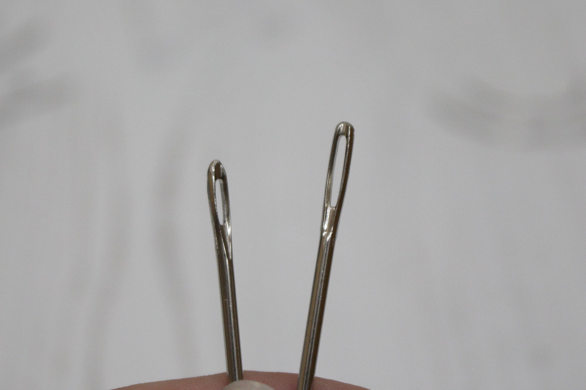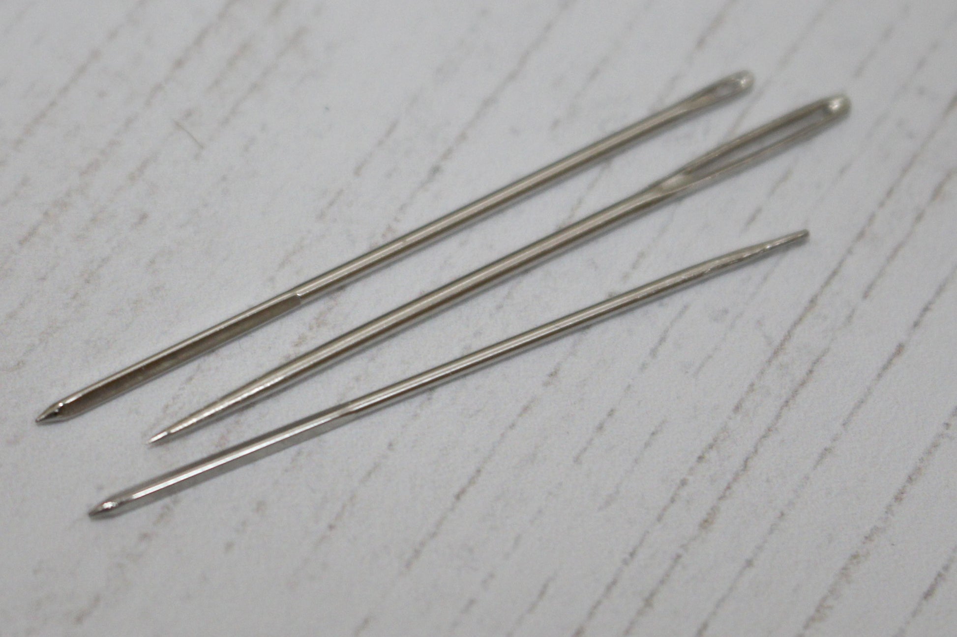 Ideal for repairing holes and damaged fabrics. The lower part of the needle has 3 flat sides which makes the needle look triangular shaped.