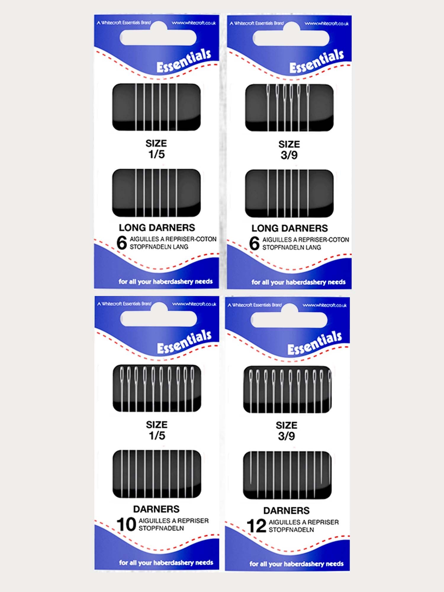 Darning needles (sometimes called Finishing Needles) are designed with a smooth point but with a blunt tip and large eye making them ideal for darning loose woven fabrics together. Longer needles are ideal for those awkward to reach jobs.