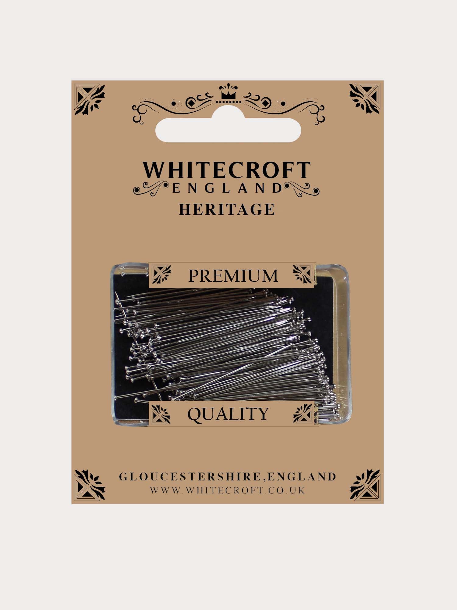 High quality Hard and Tempered (HT) steel dressmaking pins 34mm long x 0.60mm in diameter. These pins are nickel plated for a super smooth finish and fine sharp point.